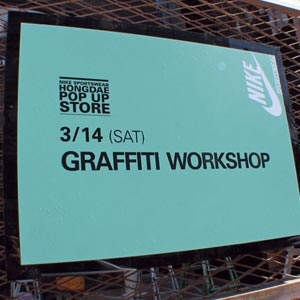 기상청의 정확한 예보대로 매우 추웠던 날, 오후 3시부터 밤 12시까지 기획된 야외 이벤트. 대기중인 작업 인부들… @_@; 가루.., Mott, Makario, Artime Joe, Jay Flow, Jins BH, Handy, Spiv, Basara, Duck Head, Santa 나이키 홍대 팝업샵의 모습 작업하게될 벽면. 중앙의 유리는 DJ부스. 작업중인 원탁 인테리어. (Jins BH, Spiv) – 못하는 작업이 없는 원탁크루 – 모트씨의 망중한. 스케치 시작되는…